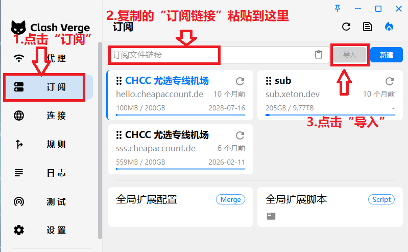 会自动跳转“Clash Verge”软件内,导入成功后会显示订阅信息