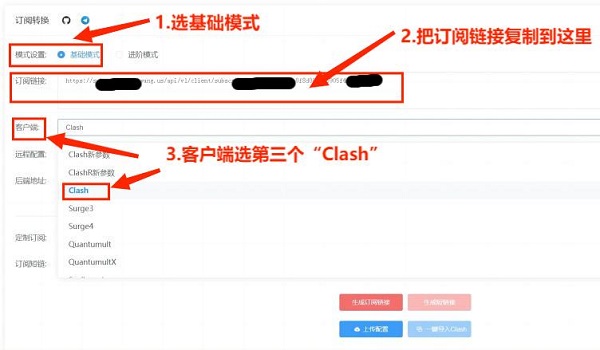 订阅链接是官网里的订阅地址(官网首页-一键订阅-复制订阅地址),然后点击生成订阅链接,生成后,点击一键导入clash(苹果用户也是点这个),就可以成功配置
